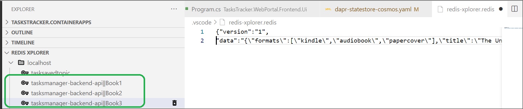 When you look at the key stored per entry and for example tasksmanager-backend-api||aa3eb856-8309-4e68-93af-119be0d400e8, you will notice that the key is prefixed with the Dapr application App Id responsible